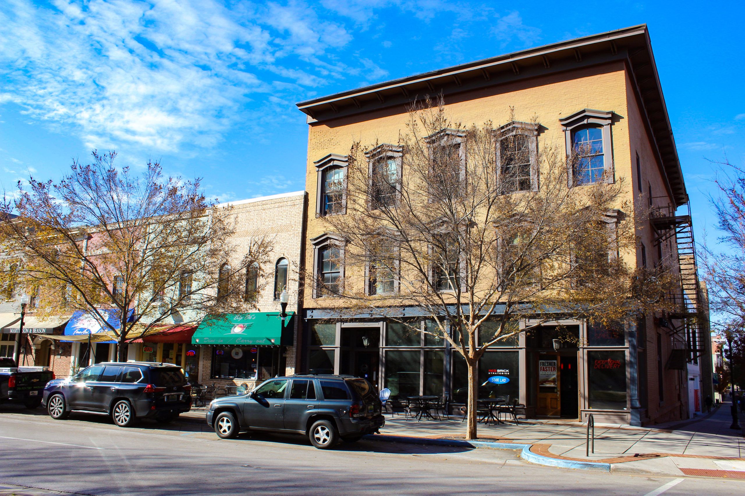 When Crunkleton took over the property and announced its renovation in 2019, it was (and is) being used as an office and retail building with restaurants on the ground floor. Since its redevelopment, it was announced that Jack Brown’s Beer & Burger Joint would join the property, giving the community another chance to enjoy the unique setting of North Side Square.