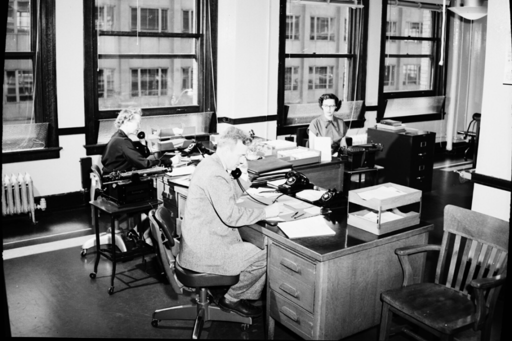 Spaces were, perhaps, less conducive to creativity and more focused on the bottom line. This was also a time before computers were widely used in offices, so employees’ workspaces—although small—had to allow for much more paperwork and manual duties.